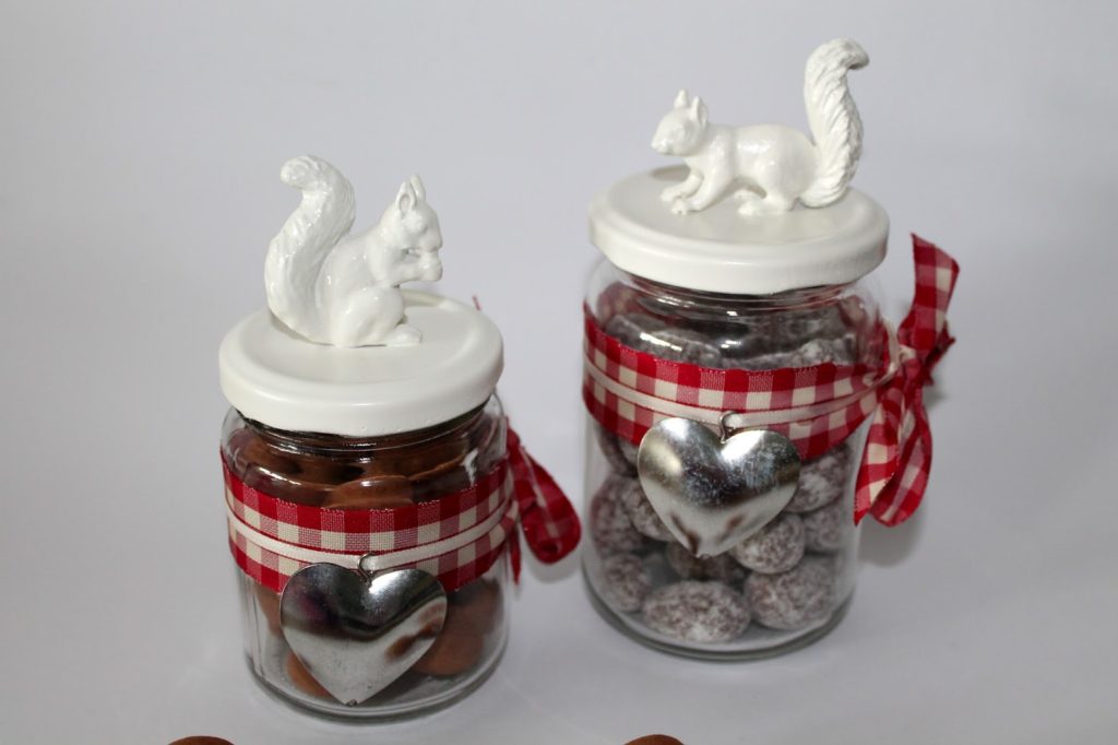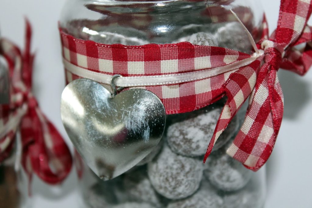 Nun schnappt ihr euch euer Schleifenband, Anhänger oder was oder wie auch immer ihr euer Glas verzieren wollt. Das war es dann auch schon. Immer eine süße Idee und ideal zum Verschenken.
