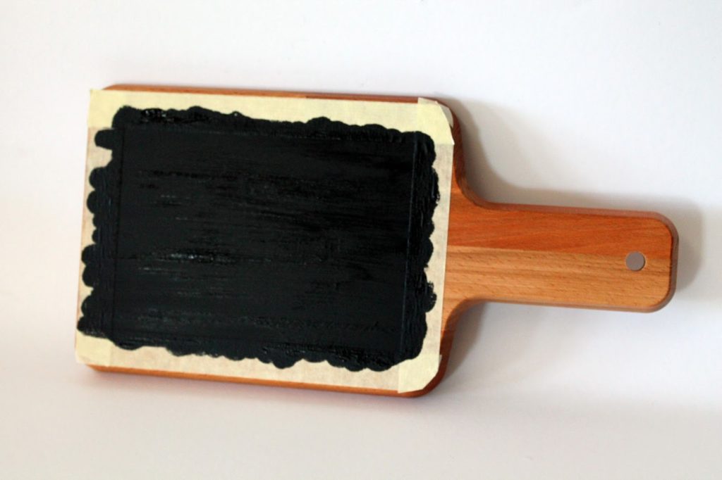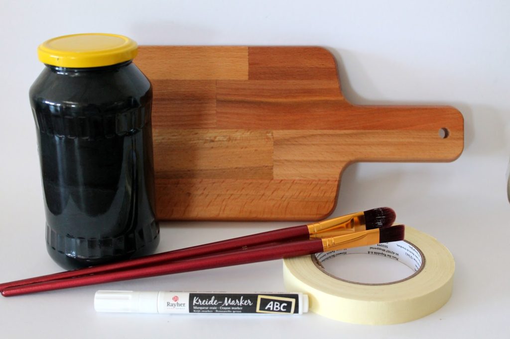 Wenn ihr das gemacht habt schnappt ihr euch euren Pinsel und malt mit Tafellack eure Fläche aus.