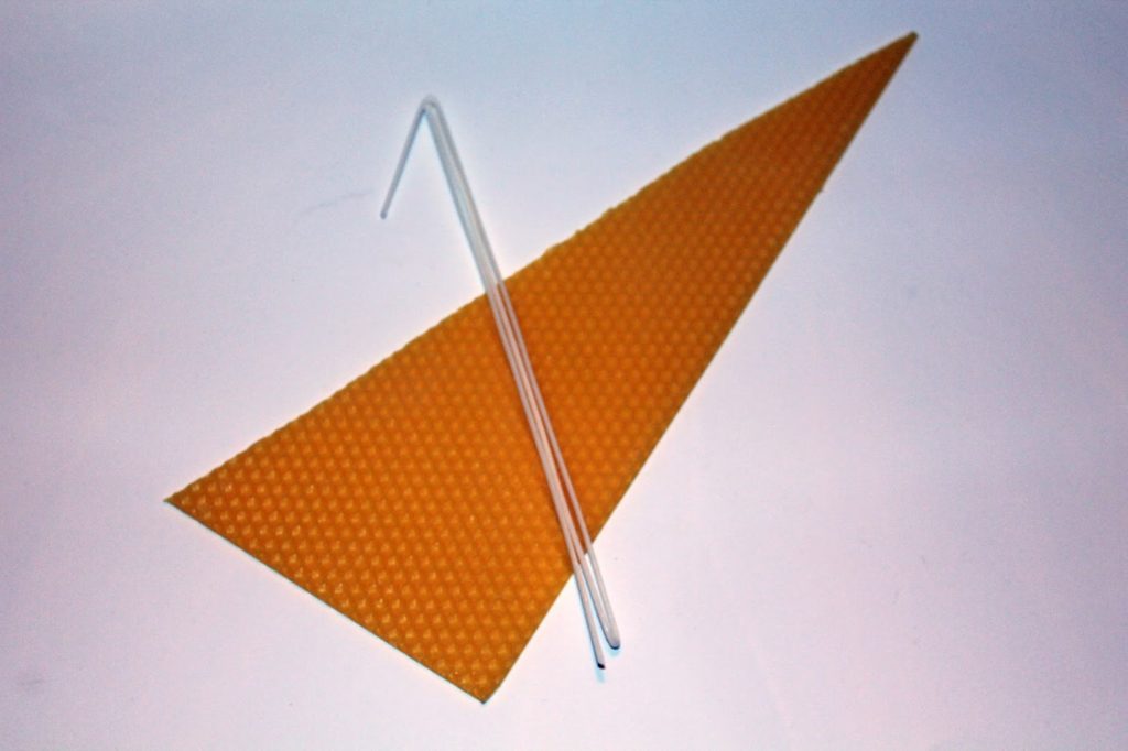 Wenn ihr eine Pyramidenform haben wollt musst ihr die Bienenwachsplatte wie auf dem Bild zurecht schneiden. Und danach genauso wie oben verfahren. Diese könnt ihr klein oder groß machen.