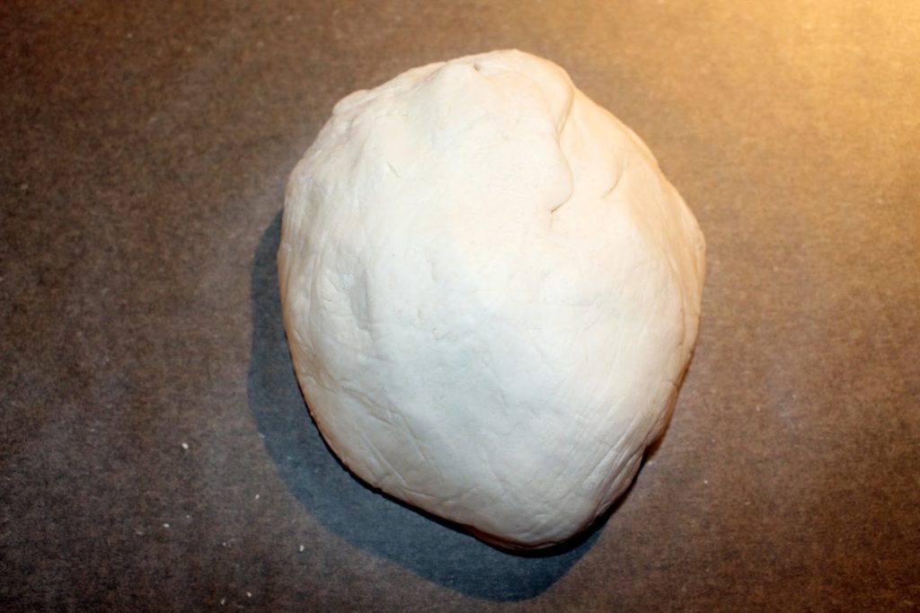 Danach alles gut durchkneten bis eine schöne, gleichmäßige Masse entsteht. Sie sollte nicht zu klebrig, aber auch nicht zu krümelig sein. Wenn sie doch noch ein bisschen zu klebrig ist, gebt ihr einfach noch ein wenig Mehl dazu und wenn sie zu fest ist, einfach noch ein wenig Wasser. Nun formt ihr eine Kugel, dann geht das ausrollen später leichter.
