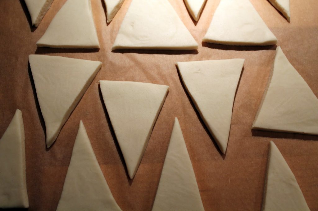 Wenn der Teig nun ausgerollt ist schneidet ihr ihn wie eine Pizza oder wie ein Kuchen. Damit habt ihr schon einmal den Körper von dem Weihnachtmann. Die Rundung unten schneidet ihr einfach ab.