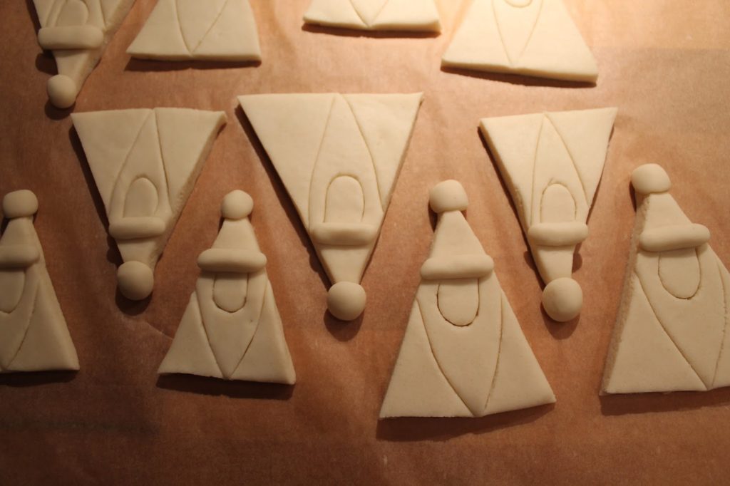Nun kommen eure kleinen Weihnachtsmänner bei 150 Grad in den Backofen. Wielange eure gebacken werden müssen hängt von der Dicke eures Teiges ab. Meiner Erfahrung nach muss man eine Teigdicke von 1 cm 1 Stunde lang backen.