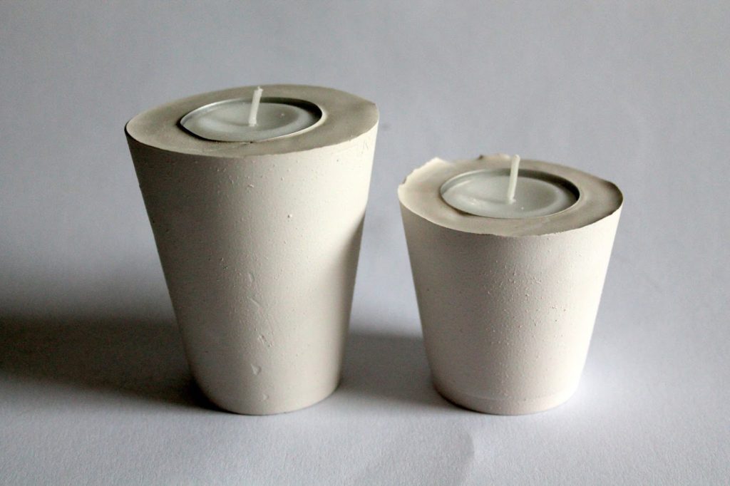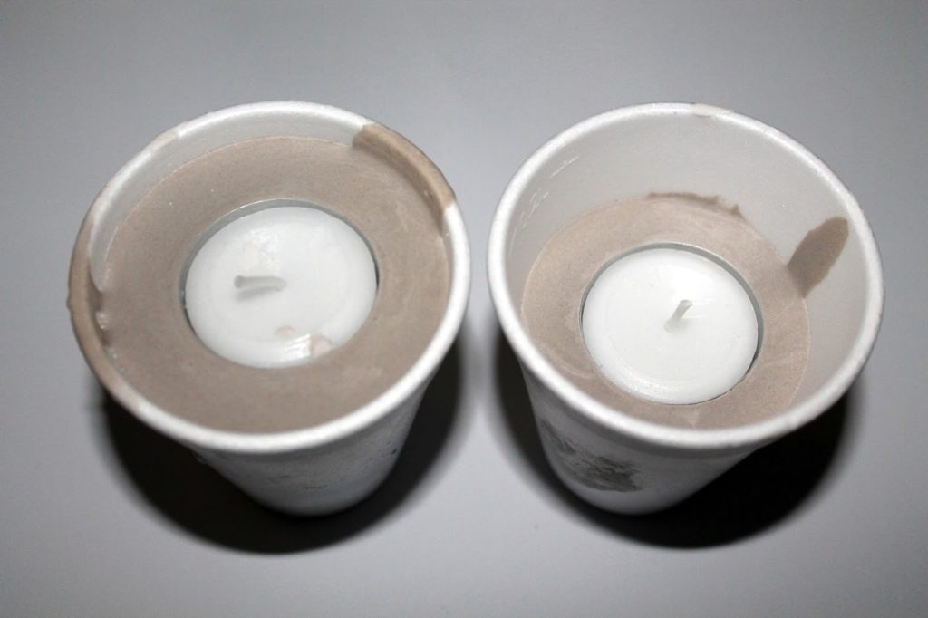 Die Teelichter waren damals aus Gips und es kommt auch immer auf den Beton an (Bastelbeton, Estrichbeton etc.).