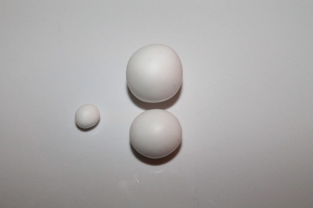 Als erstes formt ihr 3 Kugeln aus dem weißen Fimo. Die größte Kugel ist später für den Kopf, der Körper bekommt eine etwas kleinere Kugel und die kleinste Kugel ist für den Schwanz.