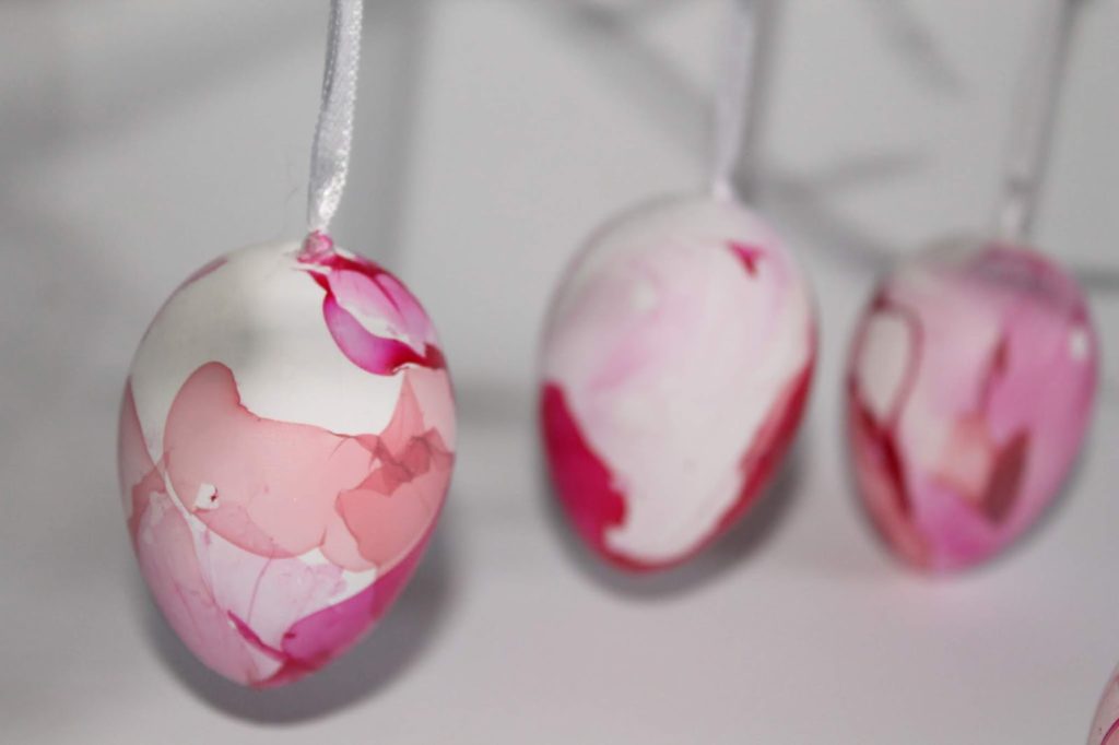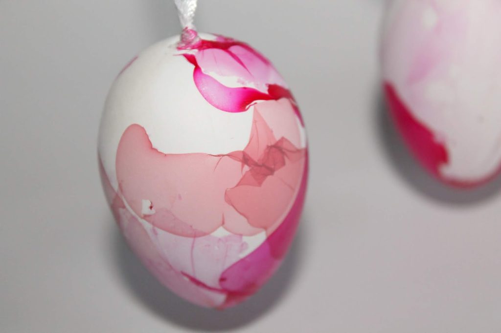 Hängt danach eure Eier zum Trocknen auf. Ich habe circa 2 Stunden gewartet, bis sie vollständig durchgetrocknet waren.