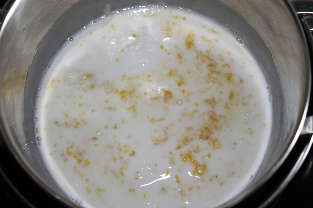 In der Zwischenzeit habe ich meine Zitrone abgerieben und ein wenig davon in die Form gegeben.