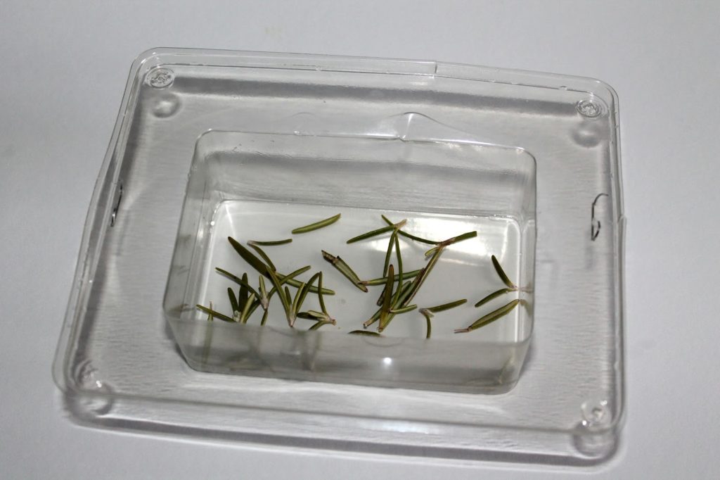 Und danach habe ich ein paar Rosmarinnadeln in die Gussform gegeben.