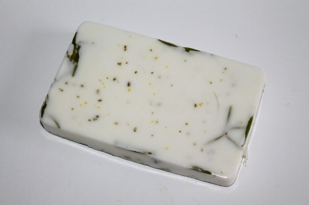 Danach habe ich mit der Rosmarinseife weiter gemacht. Dafür habe ich wieder ein Stück Seifenrohmasse geschmolzen.