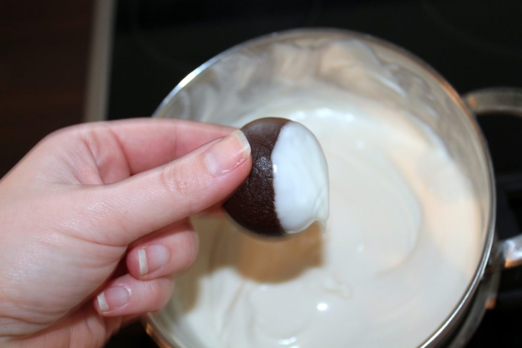 Das habe ich aus dem Grund gemacht damit sie später beim Tränken in die Schokolade nicht abfallen.