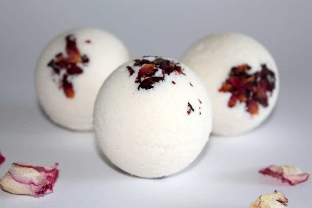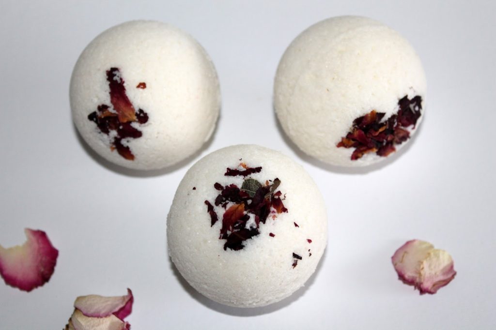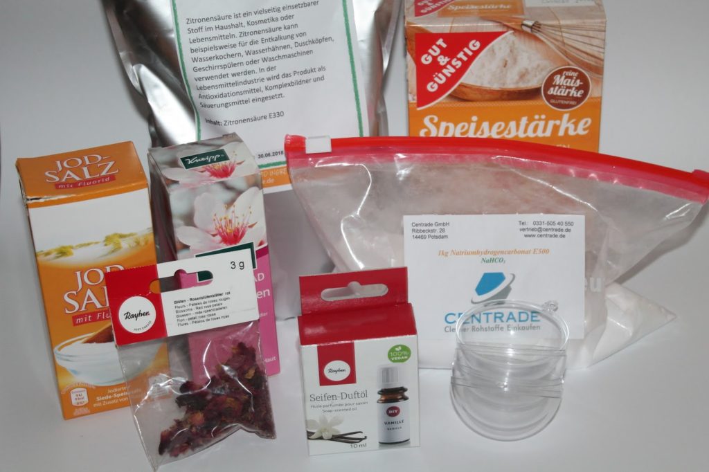 [Werbelinks] Ich habe heute mal wieder Badekugeln gemacht. Ach, ich finde Badekugeln einfach toll. Man kann sie einfach in eine kleine Klarsichtüte verpacken, ein Band drum machen und dann verschenken. Die Badekugeln kommen immer prima an. Heute habe ich sie ganz schlicht gehalten und sie einfach weiß gelassen und nur ein paar getrocknete Rosenblüten eingearbeitet.