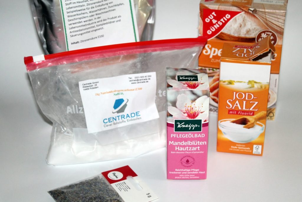 Als erstes gebt ihr euer Natron, Zitronensäure, Salz, Speisestärke und euer Mandelöl in eine Schüssel.