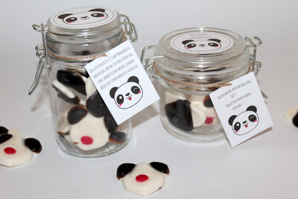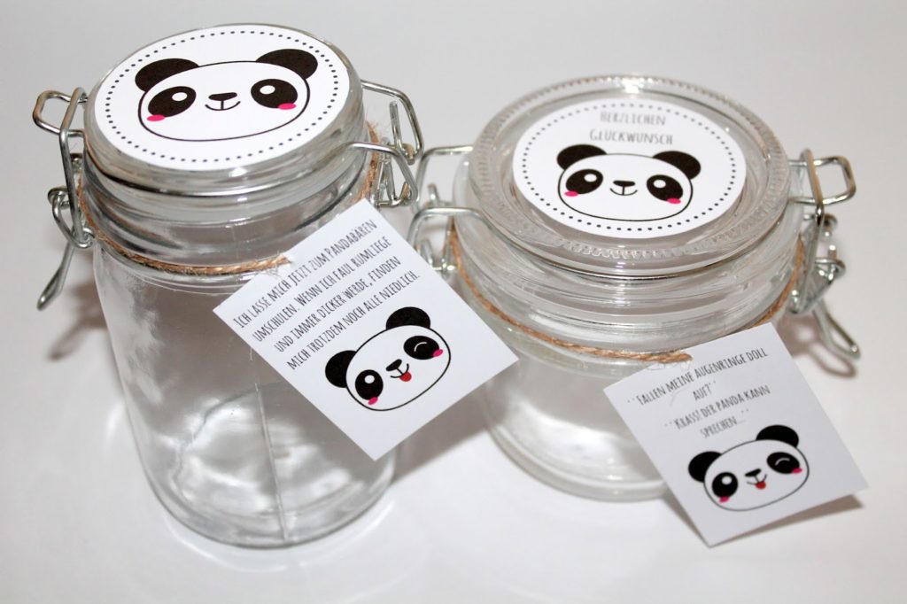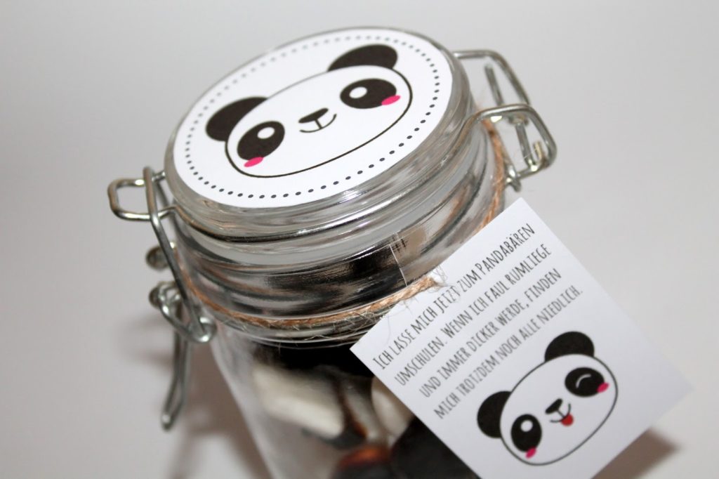 [Werbelinks] Heute habe ich wieder eine lustige Geschenkidee im Glas für euch. Ich war gerade wieder dabei Etiketten zu erstellen und habe diese Pandabären Grafik gefunden und fand sie so süß, dass ich daraus was machen musste und diese beiden Gläser sind daraus entstanden. Ich mache gerne kleine Gastgeschenke oder überrasche mit einer Kleinigkeit meine Freunde, Familie oder Arbeitskollegen.