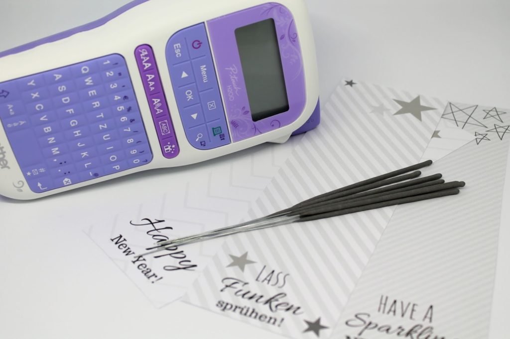 Um die Wunderkerzen am Etikett zu befestigen, habe ich mit dem Brother P-touch ein Band bedruckt und diese damit festgeklebt.