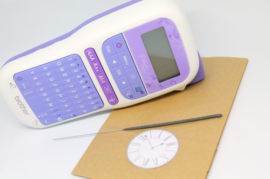 Um die Tüte ein wenig zu verzieren, habe ich mir eine Uhr ausgedruckt und auf die Tüte geklebt. Danach habe ich mir verschiedene Klebebänder mit dem Brother P-touch erstellt und ebenfalls auf die Tüte geklebt.