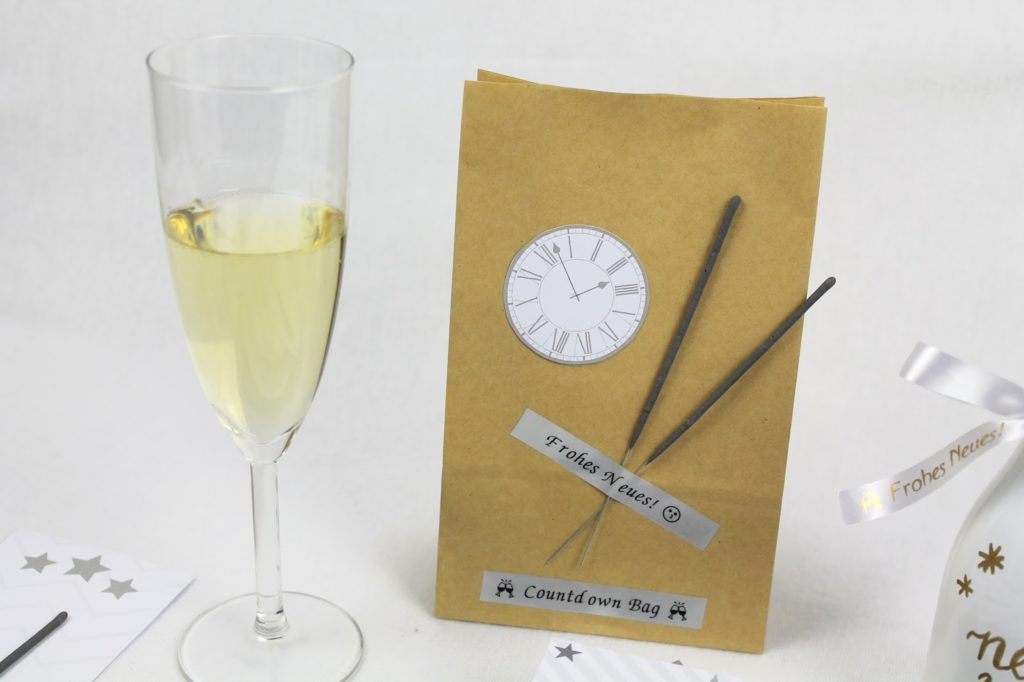 Die letzte Bastelidee ist eine kleine Geschenktüte zum Öffnen um 0.00 Uhr. Ich habe ein paar Knallerbsen, Feuerteufel, Streichhölzer und einen Glücksbringer rein getan.