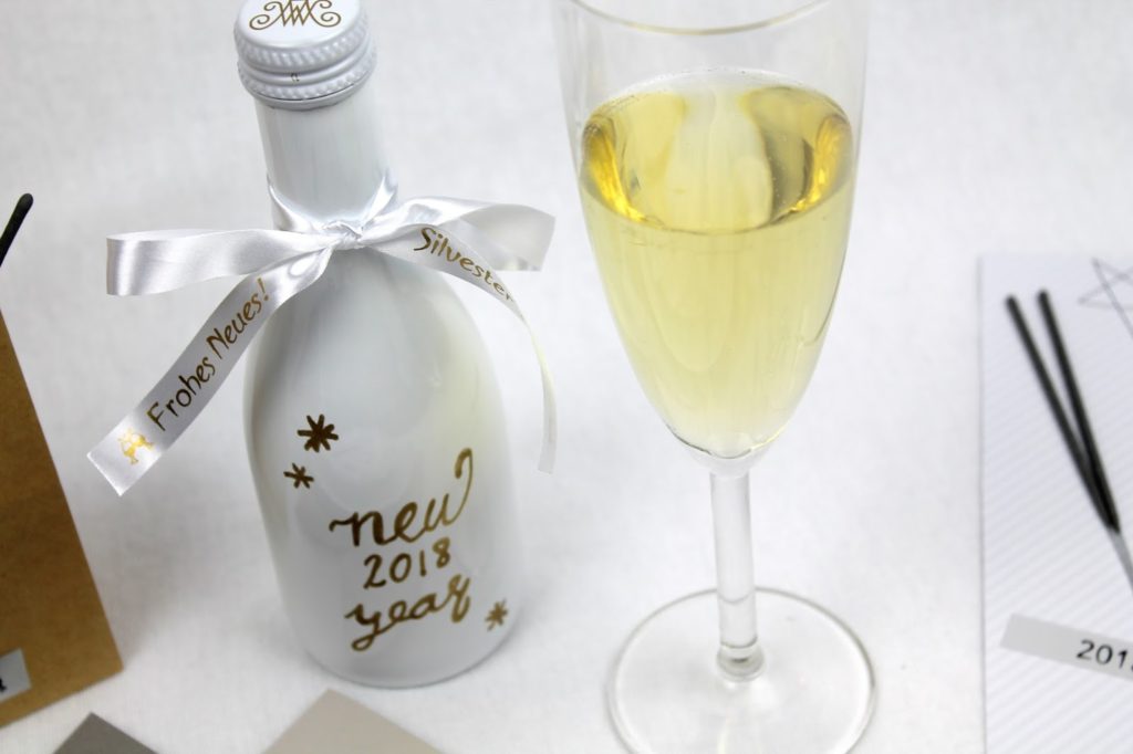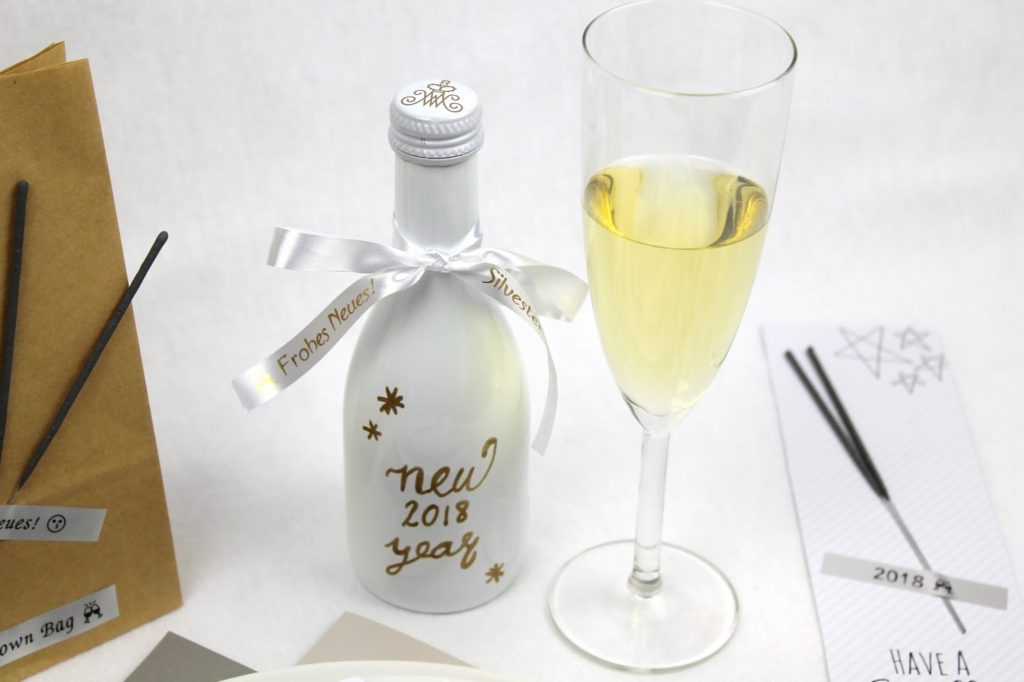 Für die Mädels habe ich ein kleines ”Silvester To Go” gemacht. Ich hatte noch kleine Sektflaschen zu Hause, die ich einfach ein wenig verziert habe.