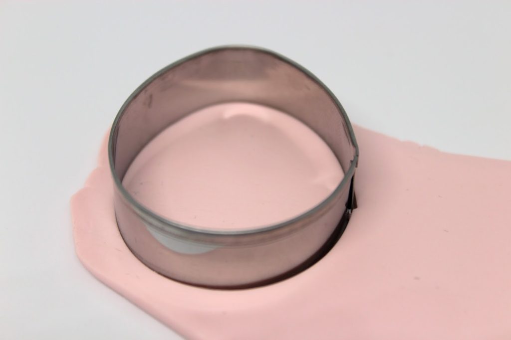 Wenn ihr das habt könnt ihr eure Ausstechform nehmen und sie in die Fimomasse drücken, genauso wie man es beim Kekseausstechen macht.