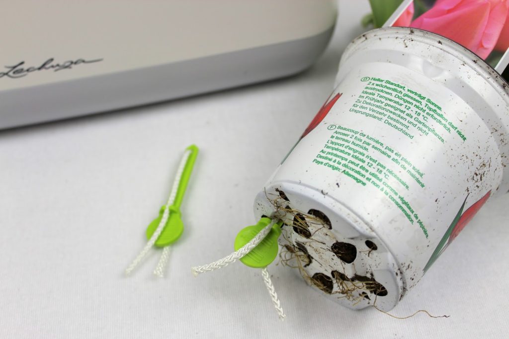 Ihr braucht keine Erde und eure Blümchen auch nicht extra einpflanzen. Über den Dochspieß ziehen die Pflanzen automatisch Wasser aus dem Yula-Pflanzgefäß. Gießen müsst ihr eure Blumen natürlich noch.