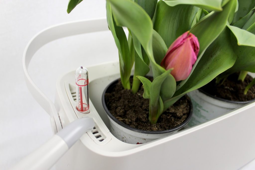 Das geschieht an der Seite der Pflanzgefäße. Super ist auch die Wasseranzeige.