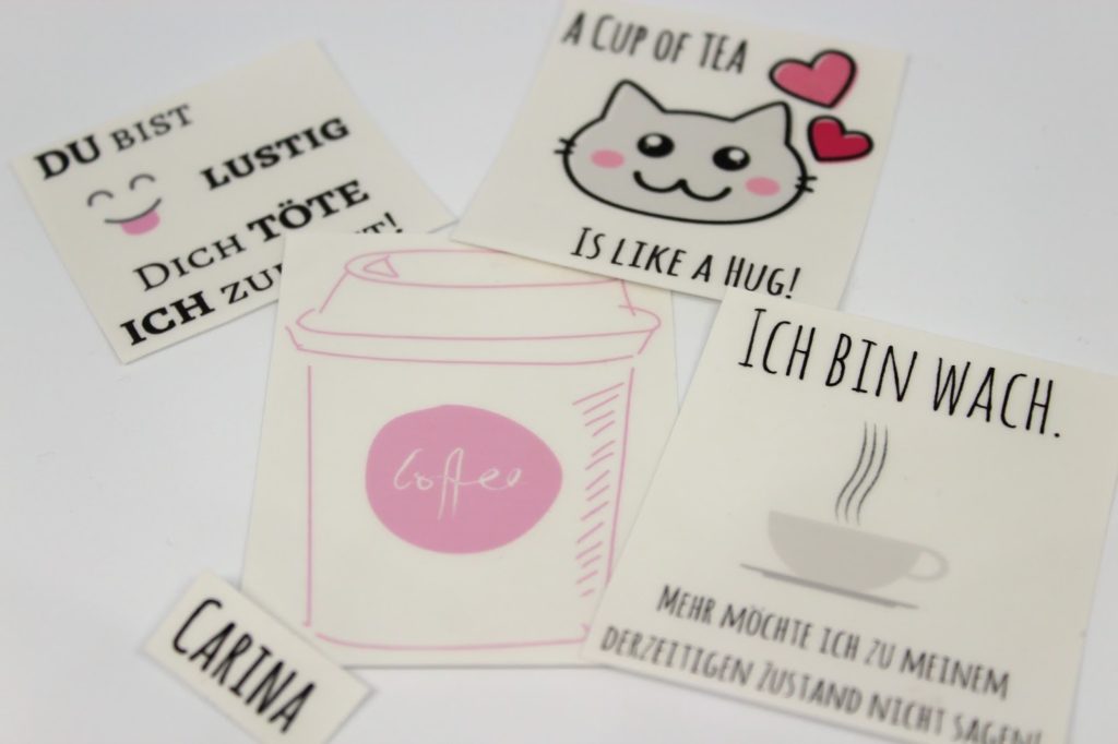 Schön finde ich auch einfach nur den Namen auf die Folie zu drucken, so weiß jeder gleich, wem die Trinkflasche gehört. Diese Idee finde ich besonders schön, wenn es sich hierbei um Trinkflaschen für Kinder handelt.