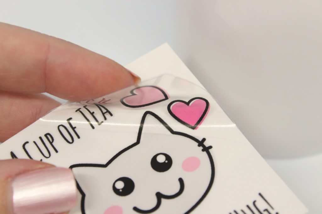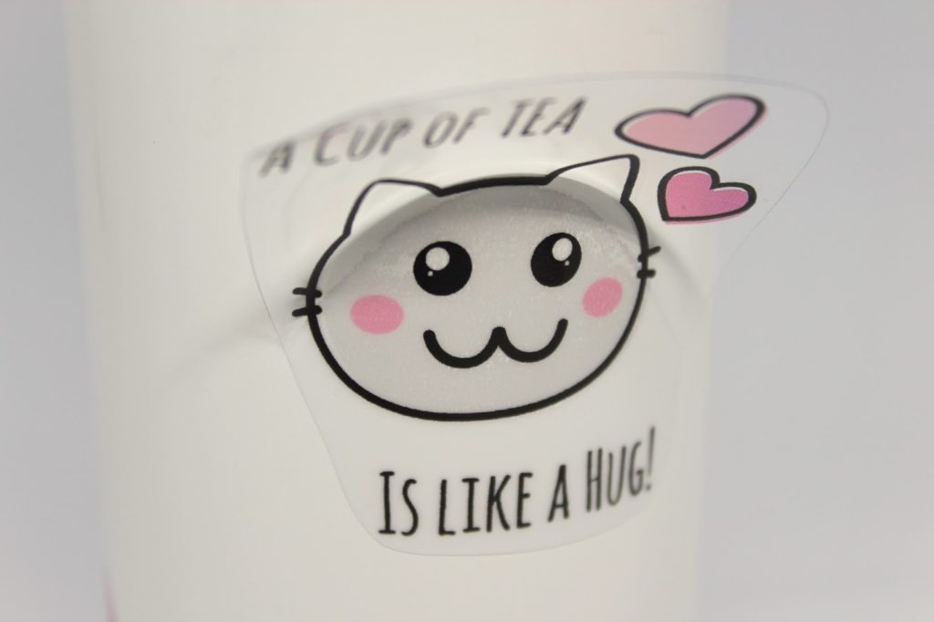Entfernt die hintere Schicht eurer Folie und klebt euer Motiv auf die Trinkflasche.