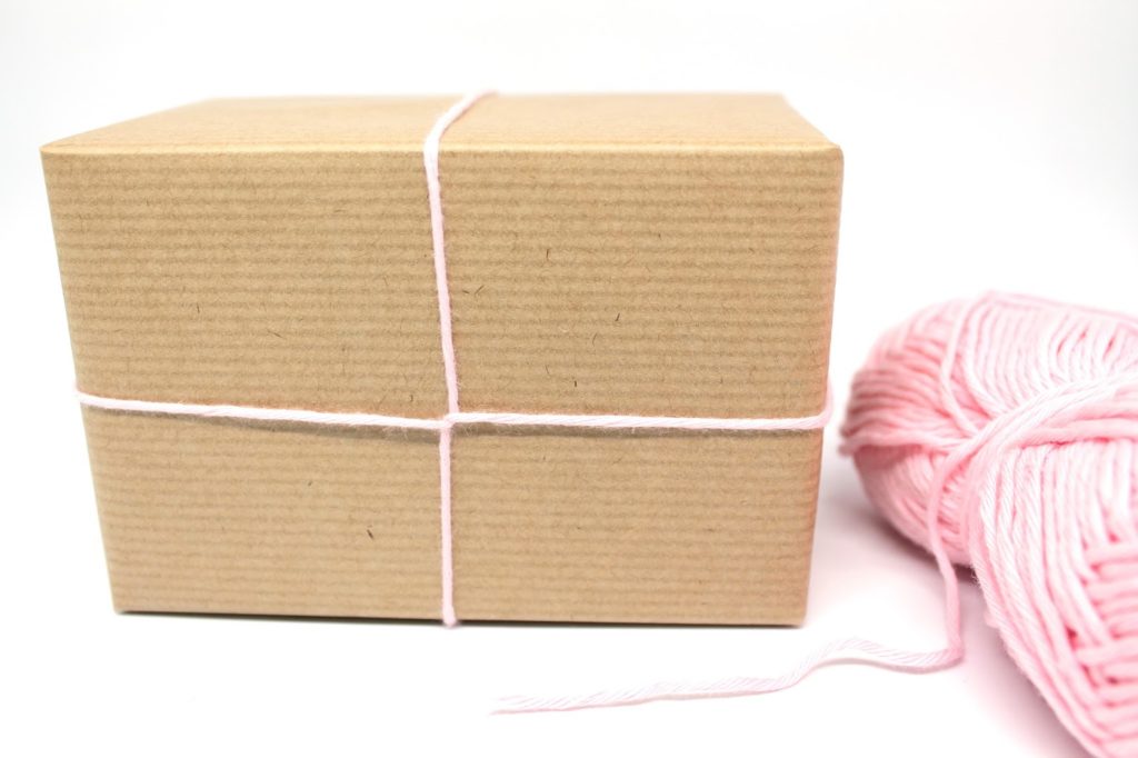 Bindet nun die Wolle um das Geschenk.