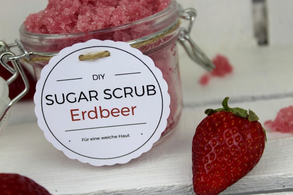 DIY Sugar Scrub / Zuckerpeeling Erdbeer- Kokos ganz einfach selber machen (+ kostenlose Vorlage)