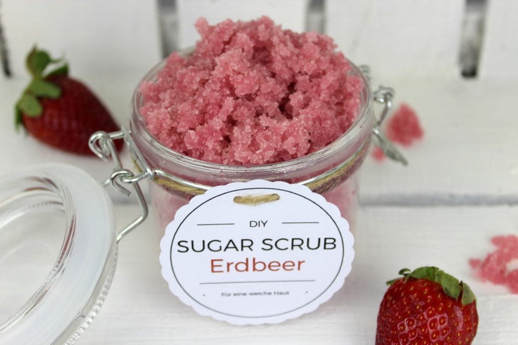 Du liest gerade: DIY Sugar Scrub / Zuckerpeeling Erdbeer- Kokos ganz einfach selber machen (+ kostenlose Vorlage)