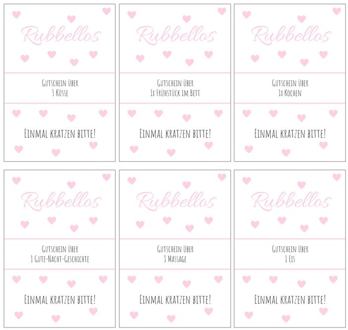 [Werbelinks] Lang, lang ist es her, als mein erster Blogbeitrag online gegangen ist. Mein erster Beitrag waren selbstgemachte Rubbellose. Als ich mir vor Kurzem den Beitrag angesehen habe, dachte ich mir das kannst du doch inzwischen besser. Außerdem wäre es doch toll, wenn ich euch ein paar kostenlose Vorlagen dazu erstelle. Genau das habe ich jetzt auch gemacht. Ich hoffe sie gefallen euch. Noch mehr Geschenkideen findet ihr -hier-.