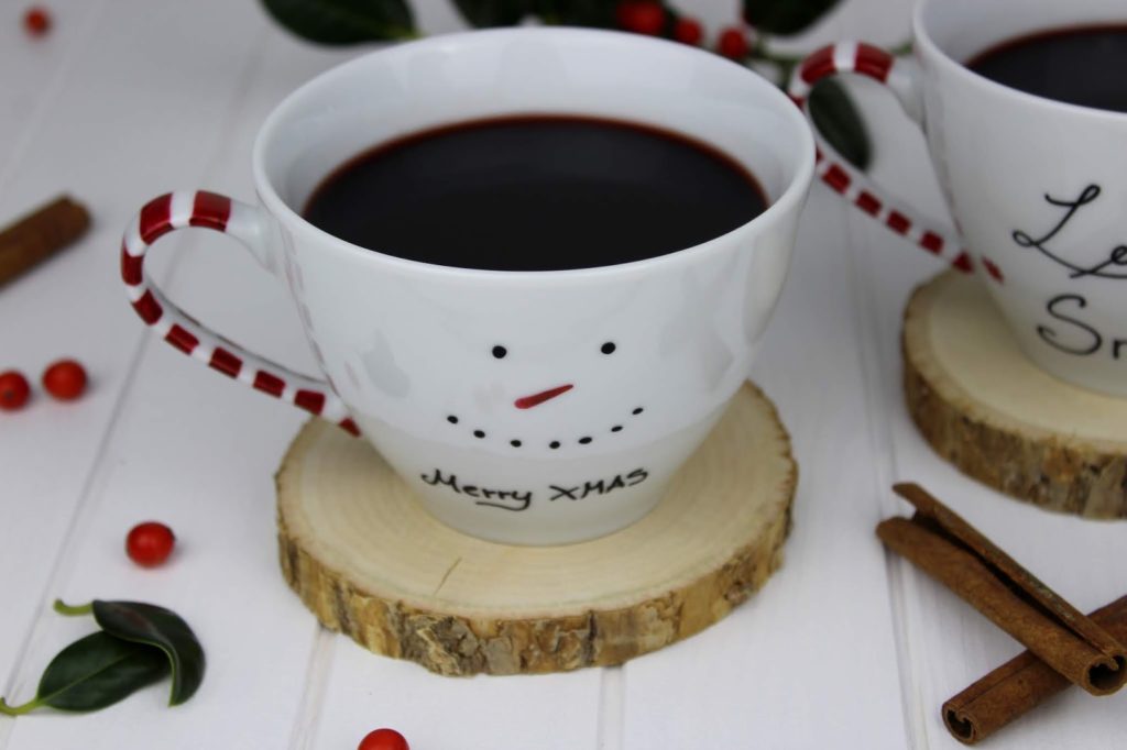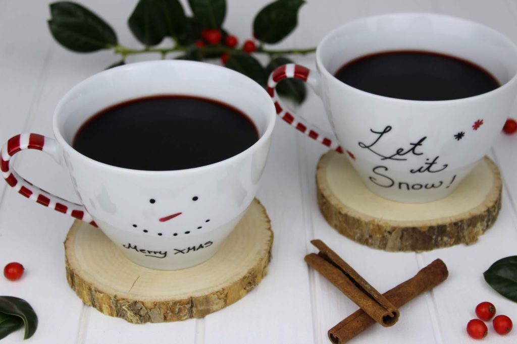 Als erstes starten wir mit den selbstbemalten, weihnachtlichen Tassen.