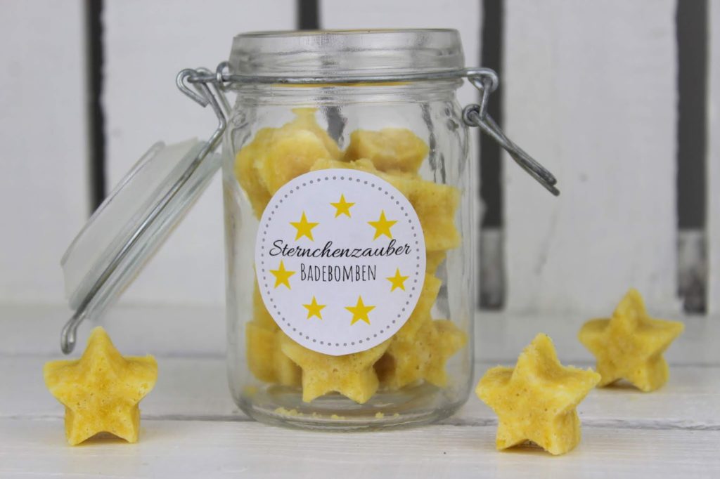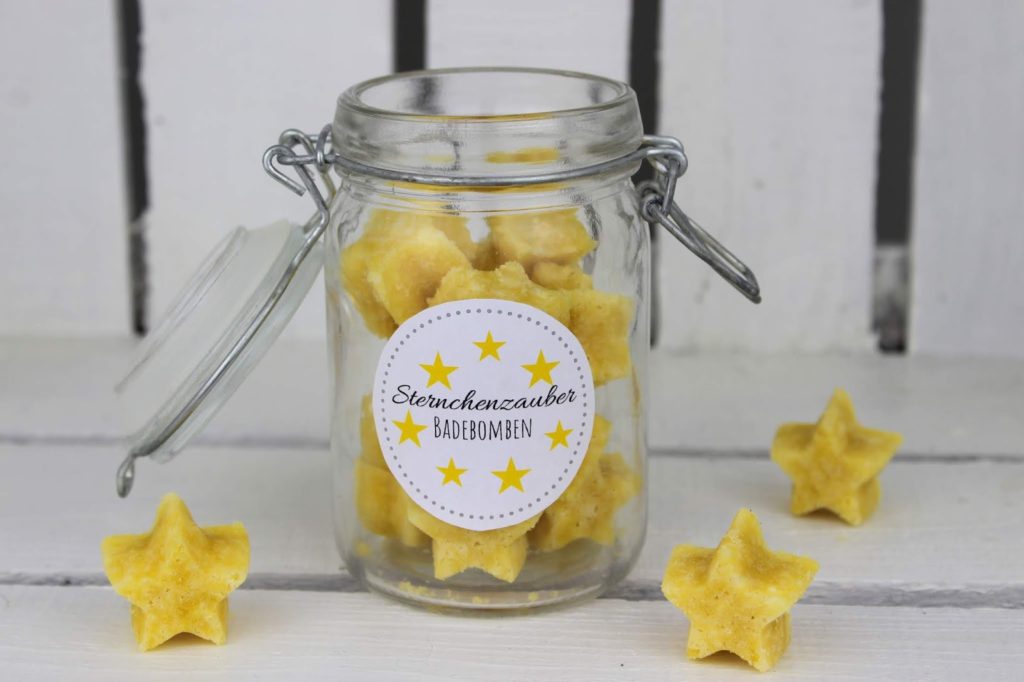 Du liest gerade: DIY Badebomben in Sternenform selber machen – eine super Geschenkidee im Glas zu Weihnachten + kostenlose Vorlage