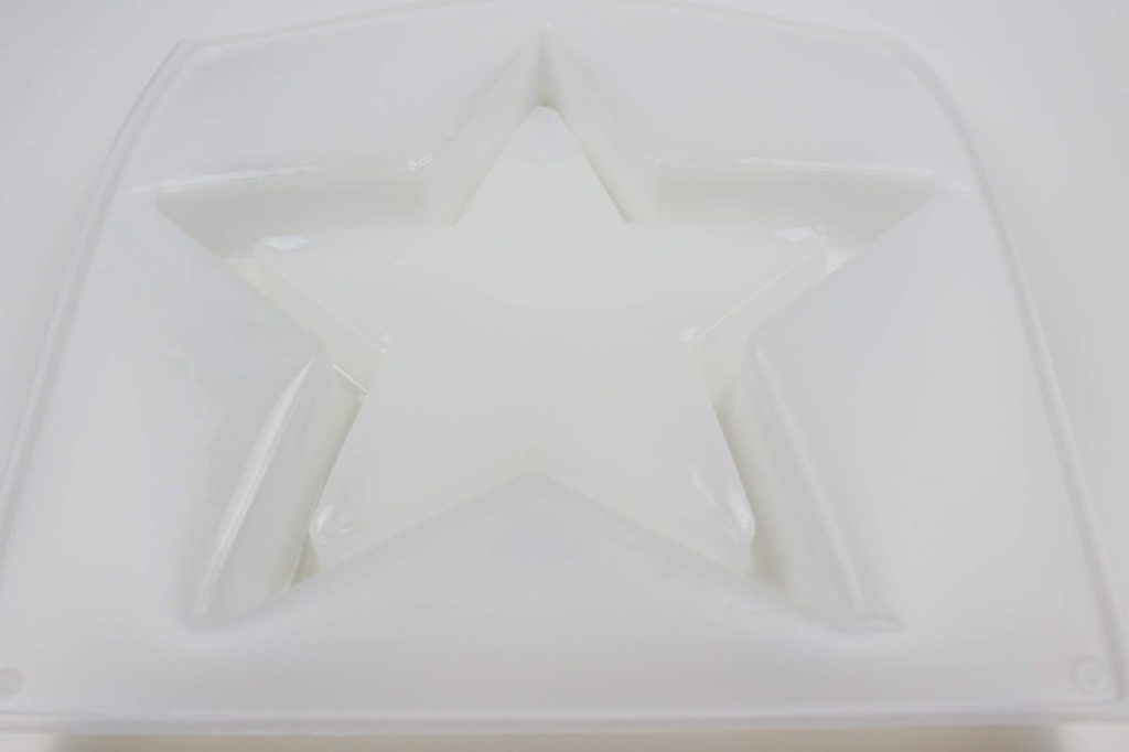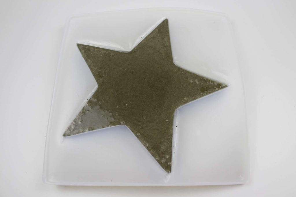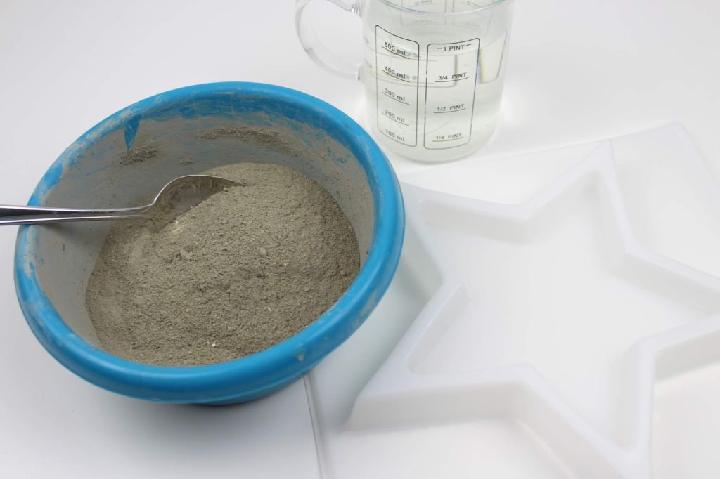 Füllt danach etwas Beton in eure Sternform und klopft diese auf einen festen Untergrund. So verteilt sich die Masse gleichmäßig und ihr habt später weniger Luftblasen in eurer Schale.