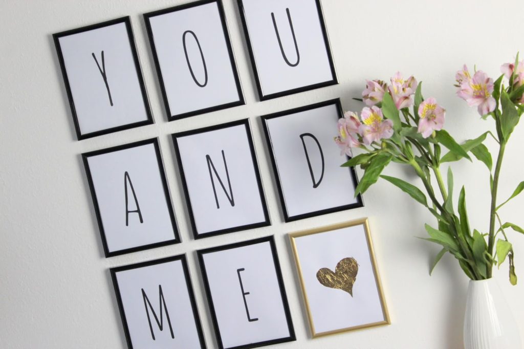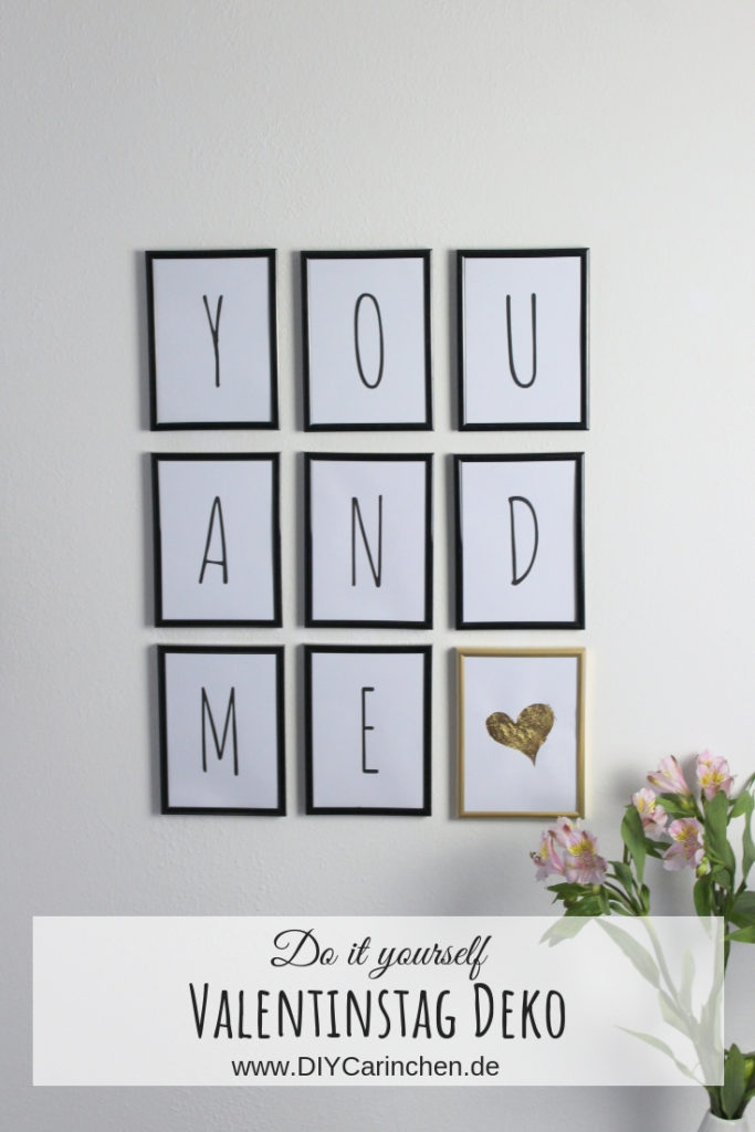 Ich war schon länger am Überlegen, was ich mit der einen leeren Wand im Wohnzimmer mache und da kam mir die Idee mit diesen Bilderrahmen. Mir gefällt diese Do It Yourself Idee total, besonders der goldene Bilderrahmen mit dem Herz aus Blattgold. Natürlich könnt ihr euch die Buchstaben und das Herz wieder bei mir kostenlos ausdrucken. Wenn ihr noch auf der Suche nach weiteren Geschenkideen für den Valentinstag seid, schaut doch mal -hier- vorbei.