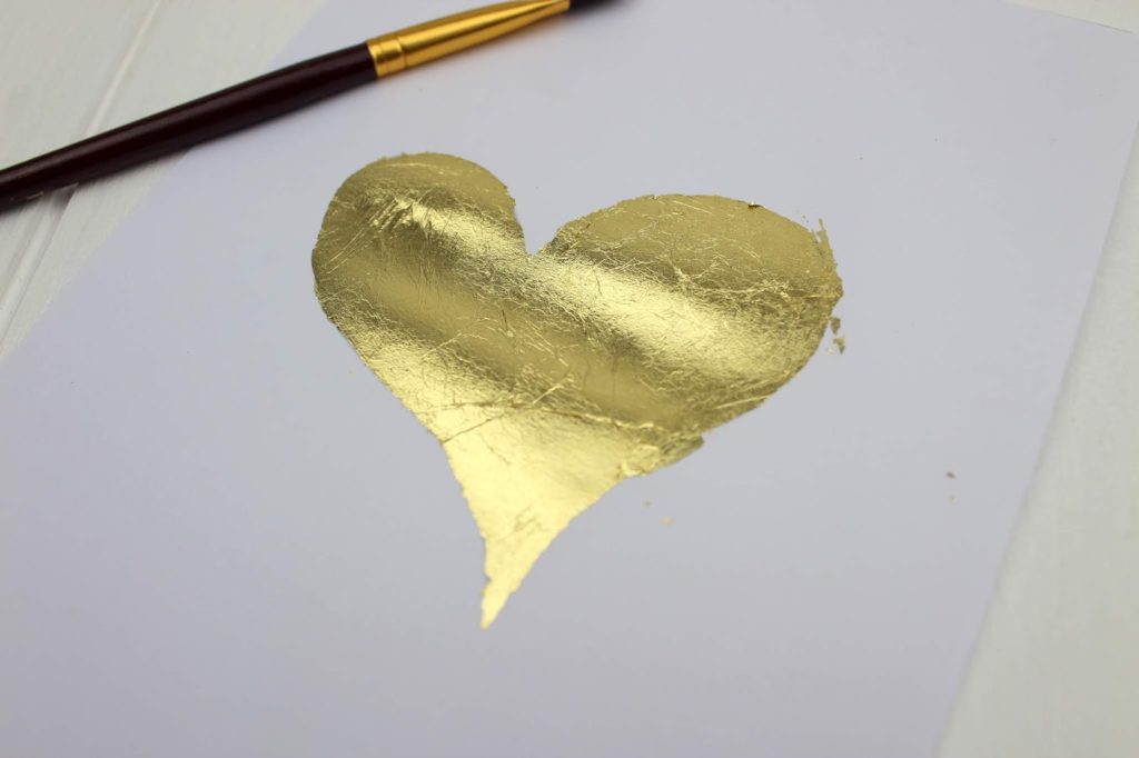 Gebt dann vorsichtig euer Blattgold auf das eingepinselte Herz und drückt es vorsichtig an.