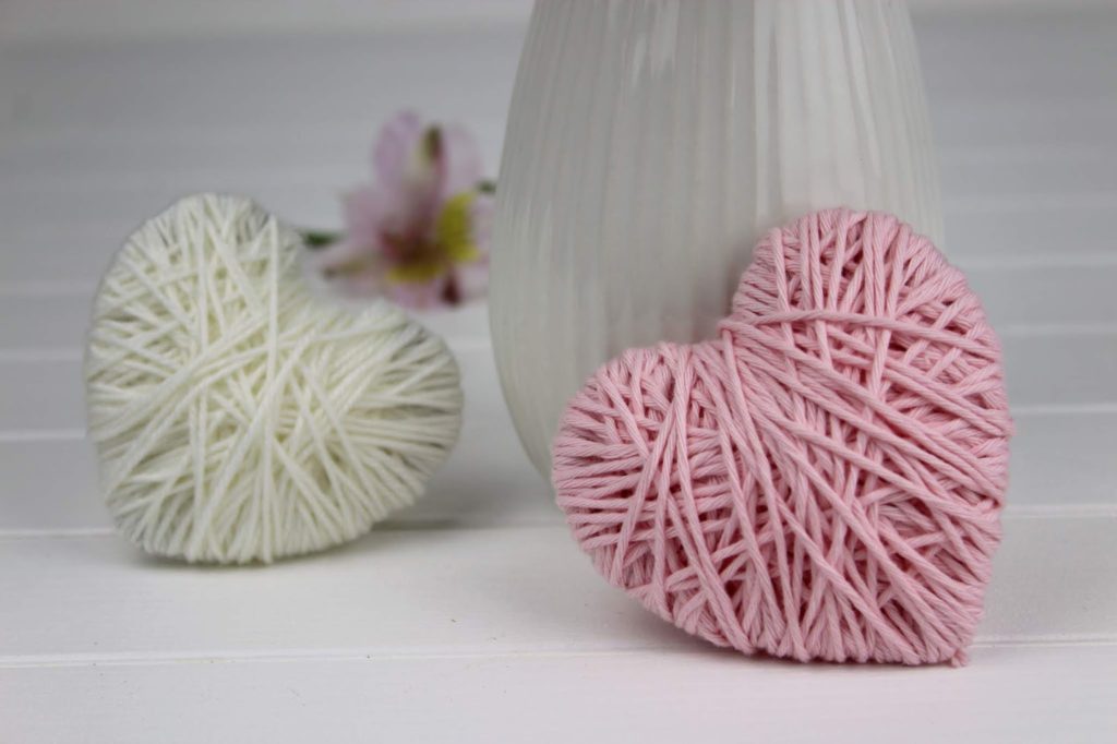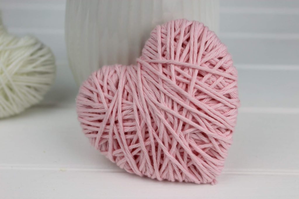 Ich habe mich für weiß und wie soll es auch anders sein für rosa entschieden. Welche Farben würdet ihr auswählen? Schreibt es mir doch mal in die Kommentare. Toll sehen die Herzen auch mit verschieden farbigen Wollfäden aus. Hier ist der Kreativität keine Grenze gesetzt.