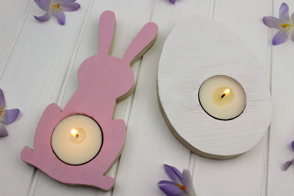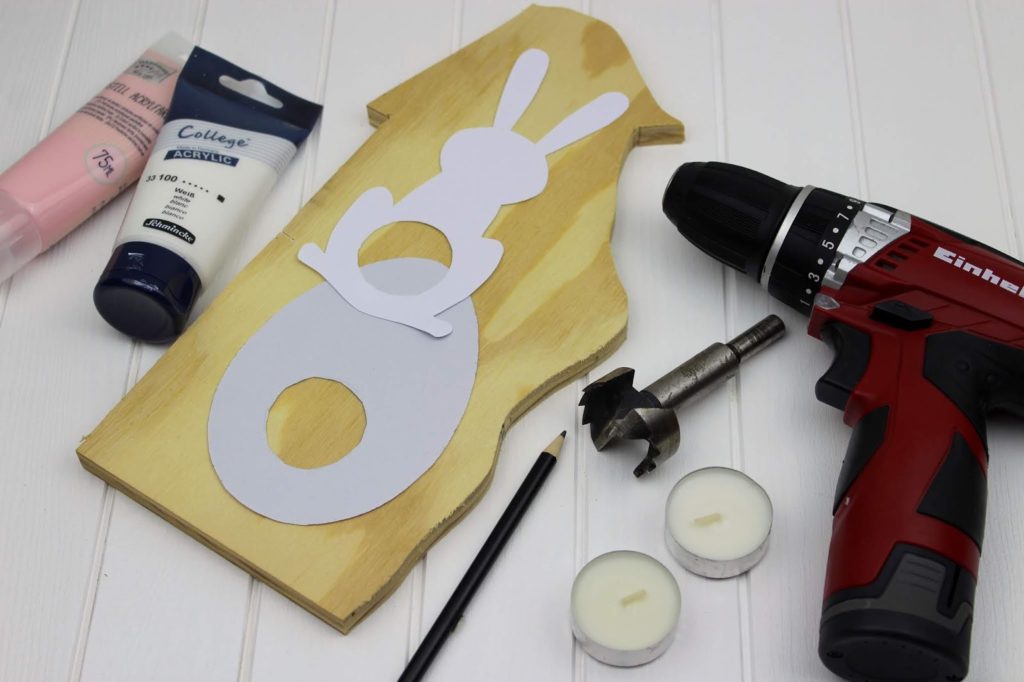 Sucht euch ein schönes Ostermotiv aus und druckt dieses aus. Nehmt euer Teelicht und malt mit einem Stift um das Teelicht herum. Schneidet dann eure Vorlage wie auch das Innere eures Kreises aus. Ich habe mich für einen Hasen und ein Ei entschieden.