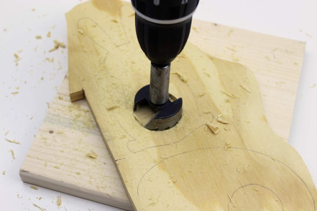 Bohrt so lange, bis ihr komplett durch euer Holz seid.