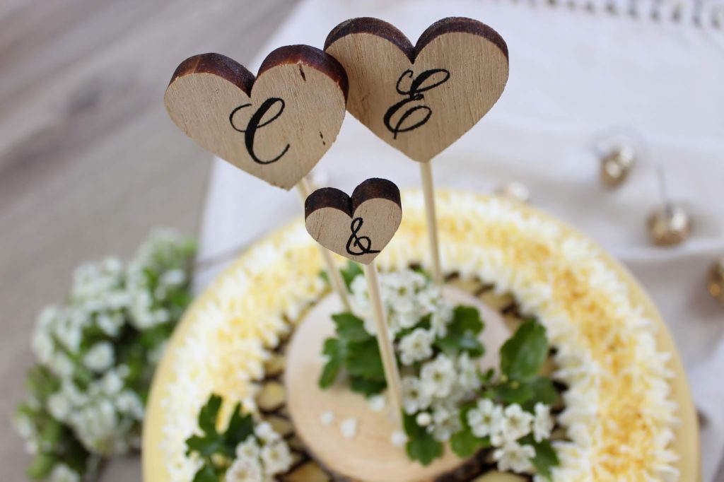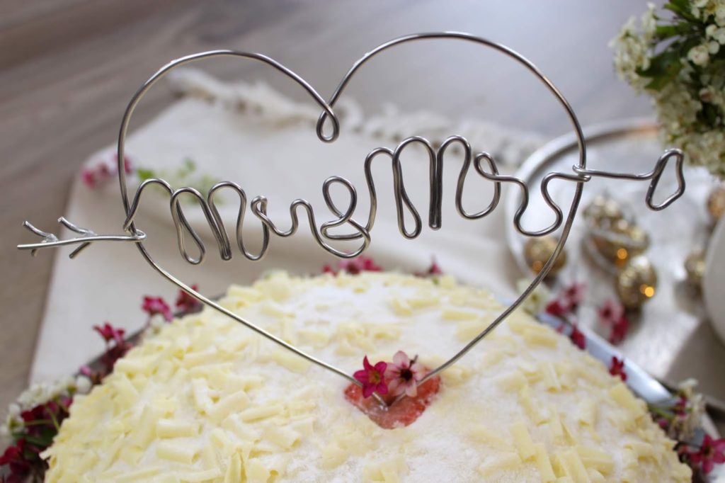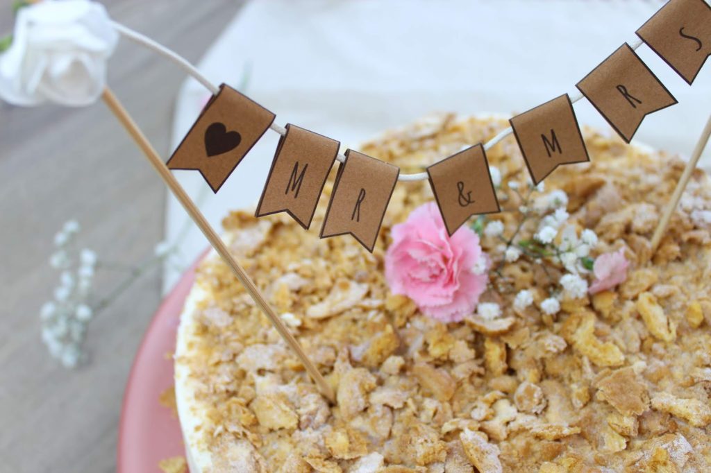 So einfach und schnell habt ihr euren ersten Cake Topper für eure Hochzeitstorte gebastelt. Einfach oder? Man kann dieses DIY auch mit Namen oder Zahlen machen, z. B. für Geburtstagsfeiern.