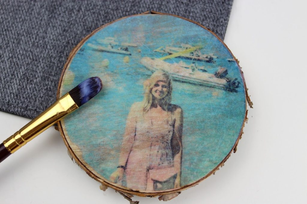 3. Bestreicht eure Astscheibe mit Transfer Potch. Ich habe 2 Schichten aufgetragen und sie zwischendurch trocknen lassen.