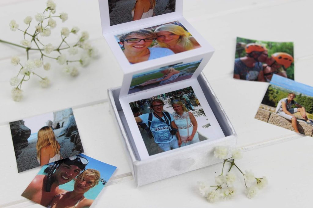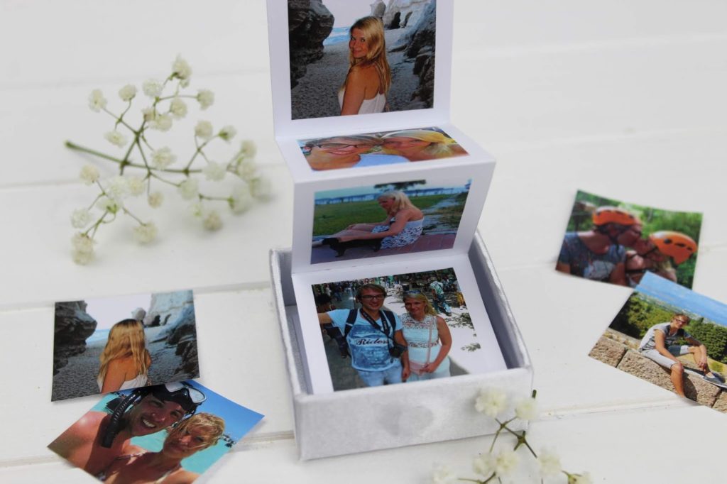 Ich könnte mir auch gut vorstellen die Bilder-Box mit dem Leporello unter ein Motto zu stellen. Beispielsweise „die schönsten Momente 2018“ oder „Danke liebe Mama“. So kann man jedes Jahr eine neue Motto-Box zum Jahrestag, Muttertag oder Geburtstag verschenken. Ich finde die Idee besonders schön, weil ich es total schade finde, dass zwar immer mehr Fotos mit den Smartphone, Tablet oder der Kamera gemacht werden, ich aber das Gefühl habe, dass trotzdem immer weniger gedruckt werden. Mit deiner Idee verschwinden die Fotos nicht auf irgendeiner Festplatte oder in irgendeinem Ordner. Mit deiner liebevollen Idee wird den Bildern noch Wertschätzung entgegengebracht und man bewahrt sie sicher gerne auf.