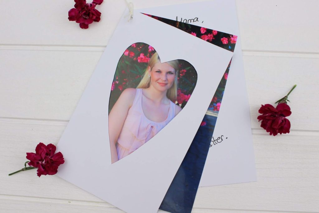 3. Schneidet aus dem einen Stück Bastelpapier ein Herz aus. Das dient später als Fenster für das Foto.