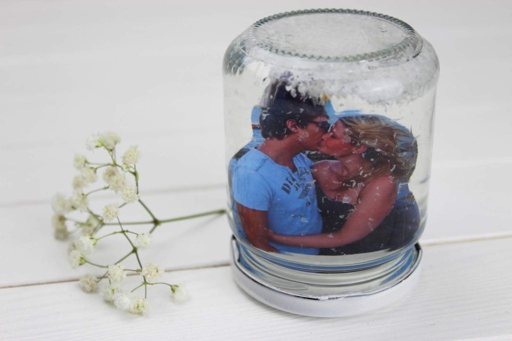 8. Nun muss nur noch der Deckel drauf geschraubt werden und fertig ist eure Schneekugel. Dieses DIY gefällt mir besonders gut. Es erinnert mich an meine Kindheit. Ich liebe Schneekugeln.