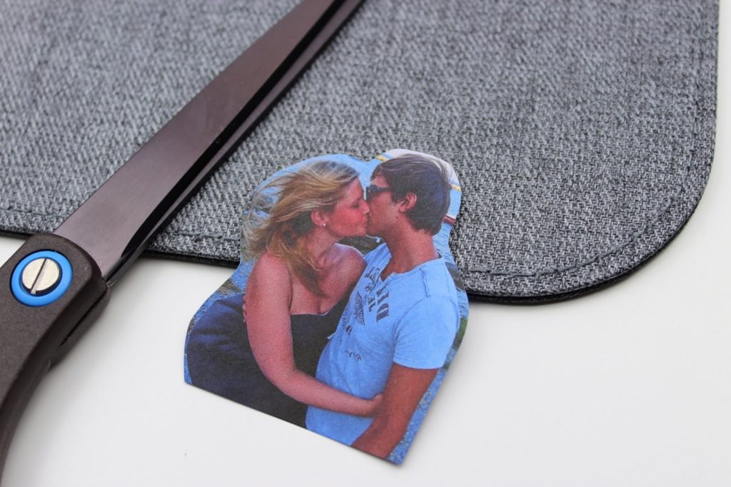 2. Schneidet die Bilder dann aus und klebt sie mit Klebstoff aneinander. Es ist natürlich auch möglich nur ein Bild zu drucken. Ich finde es aber schöner, wenn man die Schneekugel später drehen kann und einem von jeder Seite ein Bild anlächelt.