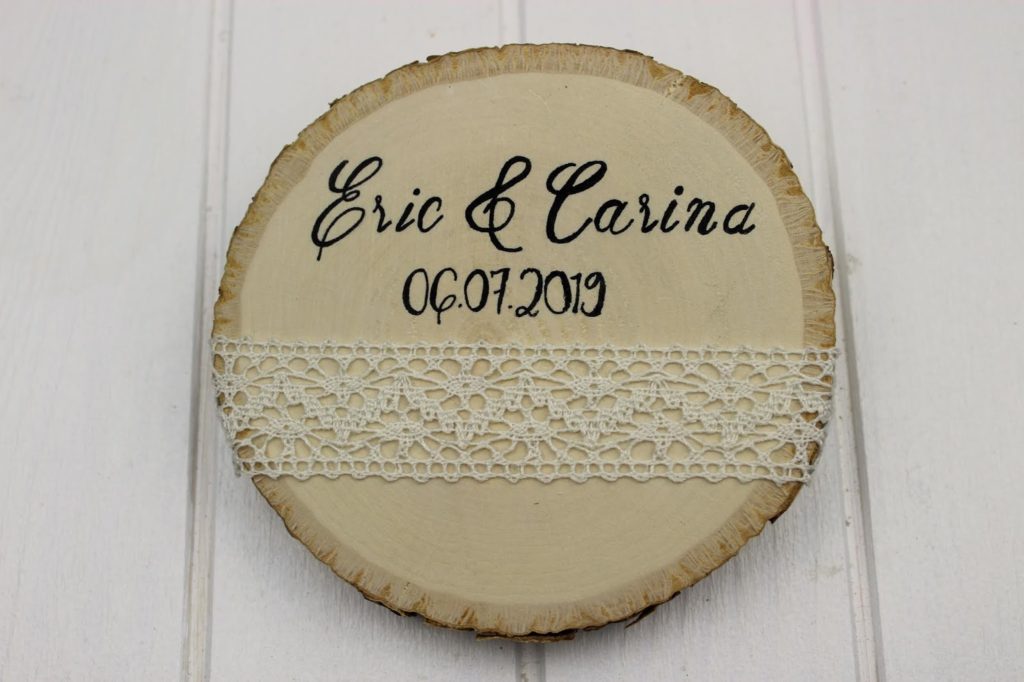 Mir gefällt es total gut. Ich liebe die Verbindung aus der Baumscheibe und dem Spitzenband. Diese Do It Yourself Idee ist schnell gemacht und zudem auch noch günstig, denn ihr braucht nicht viele Materialien. Bastelt ihr auch für eure Hochzeit? Oder habt ihr schon mal für eine Hochzeit gebastelt? Schreibt es mir doch in die Kommentare, ich bin total gespannt.