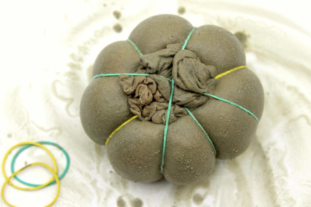 8. Wenn alles ausgehärtet ist, entfernt die Gummibänder und den Nylonstrumpf. Das kann etwas frimelig sein.
