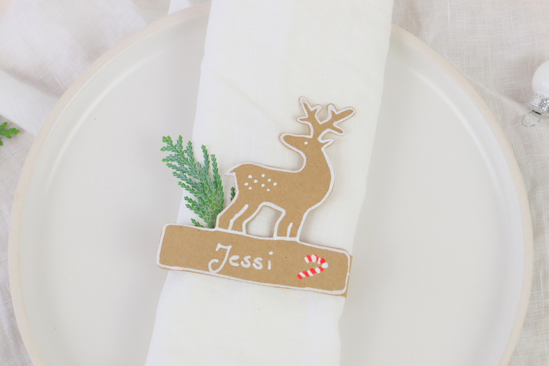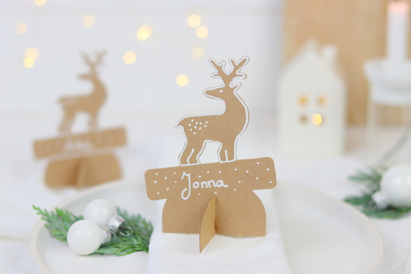 Mir gefällt das Set richtig gut. Gerade die Verbindung mit den stehenden Tischkärtchen und den Tischkärtchen als Serviettenring finde ich total schön. Außerdem, wer kann bei Rehen und Tannenbäumen schon nein sagen?