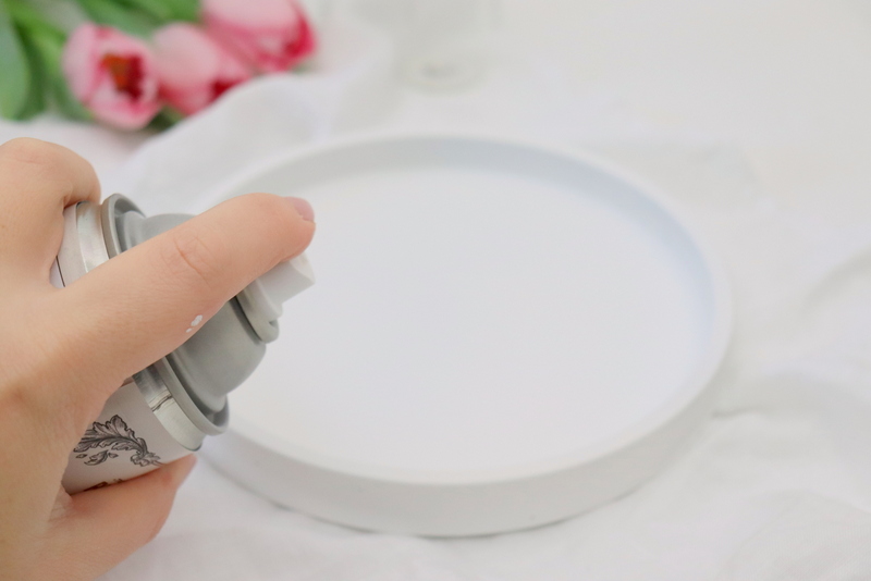 - Dies ist dann auch der nächste Schritt. Man kann sie natürlich auch erst zusammenkleben und dann ansprühen, aber das finde ich schwieriger weil man dann an ein paar Stellen nicht mehr so schön rankommen. Also habe ich den Untersetzter und den Blumentopf separat von einander angesprüht. Ich habe dazu Kreidefarbe Spray verwendet. Ich habe meins, was ich verwendet habe unter ihr braucht verlinkt. Das benutze ich immer super gerne.