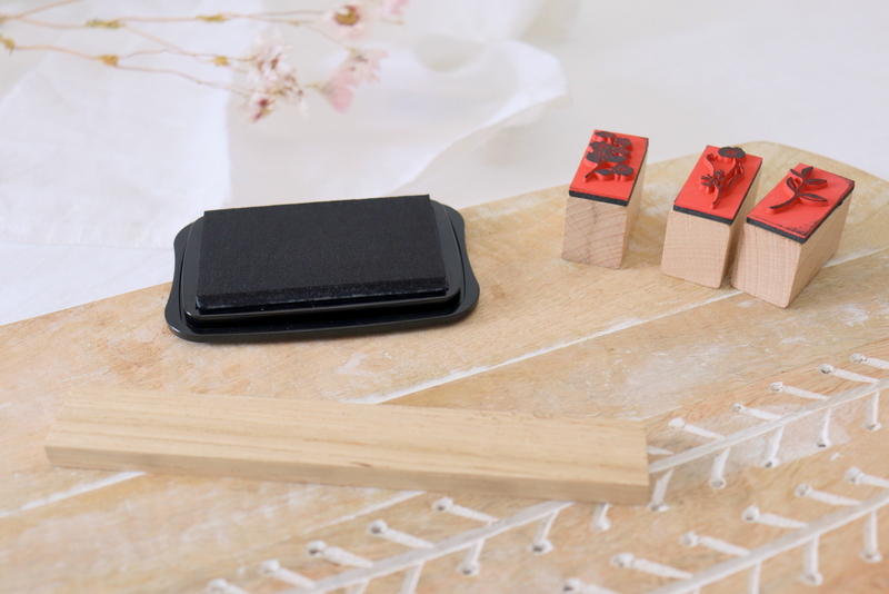 - Ich habe Blumen-Stempel verwendet. Diese habe ich mit dem Stiel nach unten und der Blüte zur Mitte des Klötzchens gestempelt.