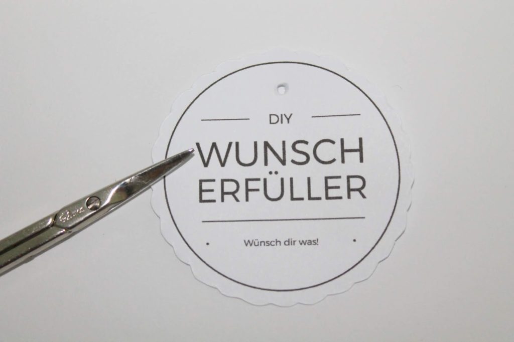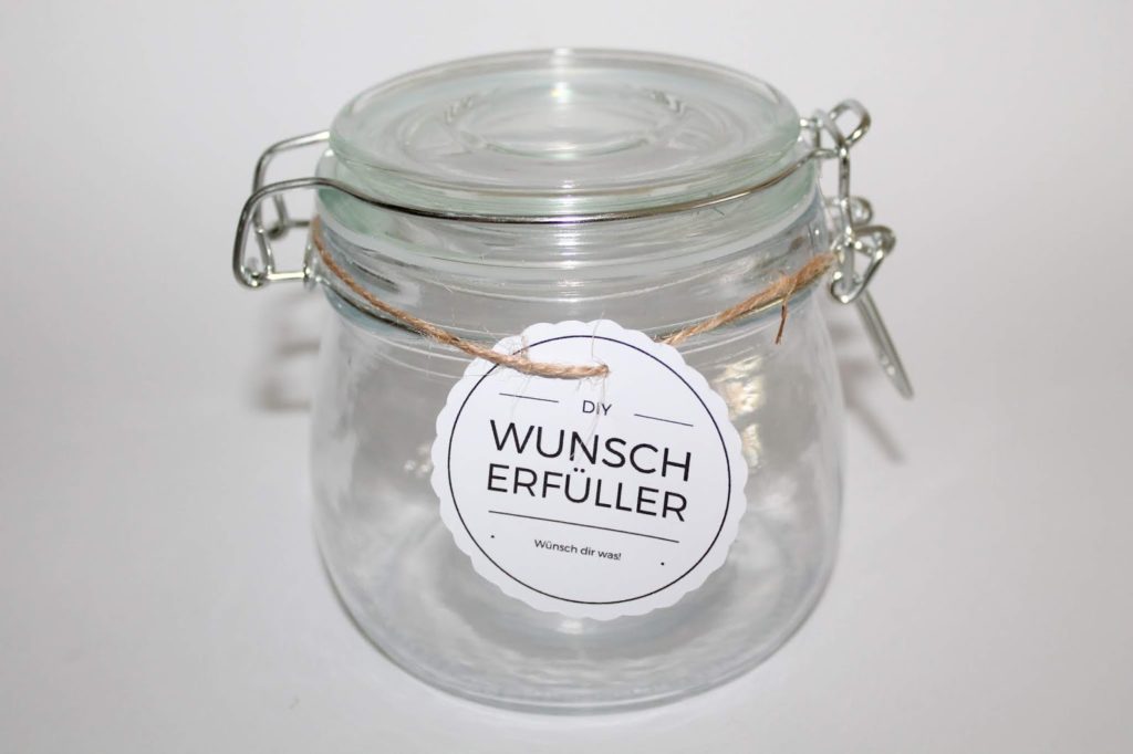 Nun wollen wir uns um das Glas kümmern. Ich habe dazu dieses Etikett designt. Das könnt ihr gerne auch für eure Wunscherfüller verwenden.