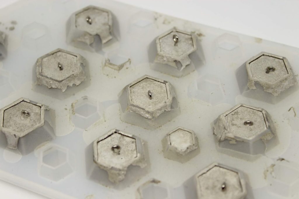 Steckt nun eure Haken in den Beton. Dazu lasst ihr den Beton am Besten kurz antrocknen. Wenn eure Masse zu flüssig ist, versinkt der Haken.